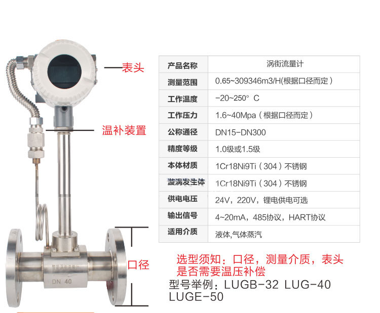 LUG渦街流量計 溫壓補償 夾持安裝 氣體液體均可測量