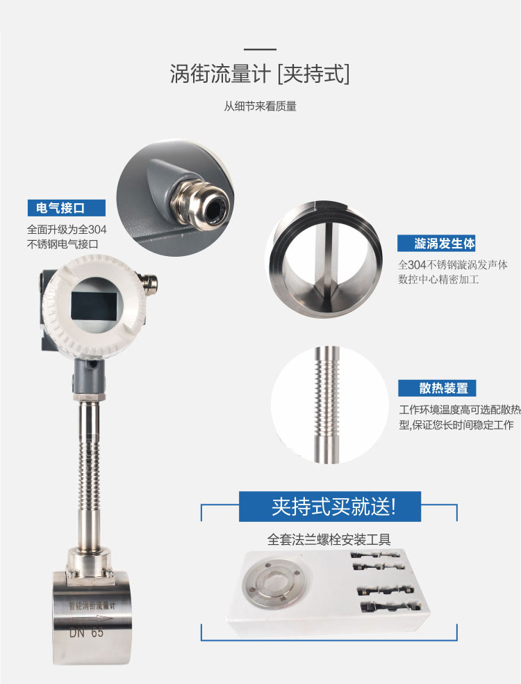 LUGB渦街流量計 溫壓補償 法蘭夾持安裝 氣體液體均可測量