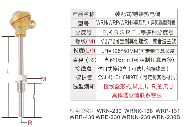 WRN-630NM WRN2-630NM | K | 0-800 | ≤30MPa | ≤80m/s | Ф15 |