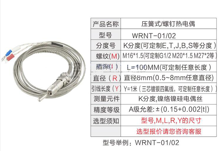 WRNT壓簧式熱電偶 端面 E,K,J,T分度專業定制