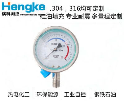 不銹鋼壓力表采用直接接觸式接頭和感壓元件材料,采用icr18Ni9T、Ocr18Ni12Mo2Ti、 sus316,結構為全密封型,具有較強的防被測介質腐蝕和抗環境腐蝕的能力。不銹鋼壓力表適用于腐蝕性較強的適合不銹鋼元件檢測的介質和惡劣的外部腐蝕環境中 ,不銹鋼壓力表廣泛應用于石油、化工、冶金等工業。