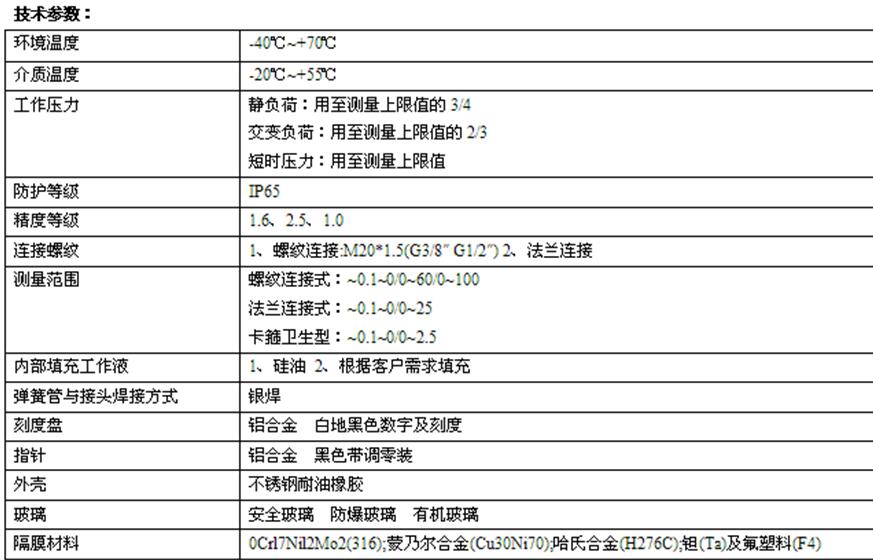 Y-100B/150B/MF/ML隔膜壓力表膜片壓力表 哈氏合金 鉭膜片